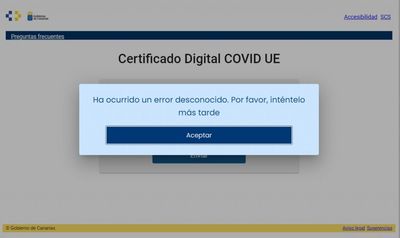 Die Webseite der kanarischen Regierung, auf der das digitale Impfzertifikat heruntergeladen werden kann, ist kollabiert. Fast 900.000 Personen wollten das Zertifikat haben, mit dem man auch in Stufe Vier ins Restaurant gehen kann. Seit Tagen ist es ein großes Geduldsspiel, das Zertifikat zu bekommen. Die Webseite ist von dem Andrang überfordert.
