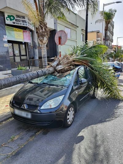Der stürmische Wind mit Böen von teilweise mehr als 100 Km/h H richtete nicht nur auf Teneriffa, sondern auch auf den anderen Inseln, insbesondere in den nördlichen Bereichen einige Schäden an. Vielerorts gab es umgestürzte Bäume und Palmen. Auf Teneriffa fiel eine davon auf ein Auto und verletzte den Fahrer.