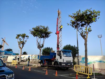 Am Fußballstadion El Peñon in Puerto de la Cruz sind derzeit Kräne im Einsatz. Sie sollen den 20 Meter hohen Pfeiler für das Flutlicht, der durch die Jahre und die salzige Meeresbrise ziemlich verrostet ist, austauschen. An dem neuen Turm sollen dann auch vier neue Flutlichter angebracht werden.