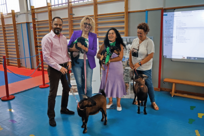 Die Leiterin des Tierheims Acción del Sol, Marion Köpke, hat in Absprache mit der Ge-meinde Arona die Grundschule von Chayofa besucht. Die Kinder lernten von ihr einen verantwortungsbewussten Umgang mit Tie-ren oder was zu tun ist, wenn man ein aus-gesetztes Tier findet. Und natürlich waren auch tierische Vertreter des Tierheims, zwei Hunde, zwei Zwergziegen, Küken, Kaninchen und eine Katze dabei und genossen die Streicheleinheiten durch die Kinderhände.