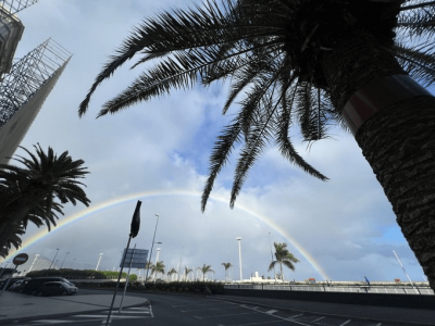 An vielen kanarischen Orten waren am Freitag nach den ersten Regenschauern herrliche Regenbogen am Himmel zu sehen. Der Herbst hat mit Regen und sinkenden Temperaturen begonnen. Seit Samstagmorgen um sieben Uhr hat die kanarische Regierung ei-ne Wellenwarnung herausgegeben. Am Sonntag werden vier bis fünf Meter hohe Wellen an den Küsten erwartet. Bitte halten Sie Abstand!