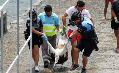 Bei La Puntilla an der Playa de las Canteras trieb am Mittwoch ein totes Schaf im Meer. Lokalpolizisten haben das Tier entdeckt und gemeinsam mit Mitarbeitern des Roten Kreuzes aus dem Wasser gezogen.