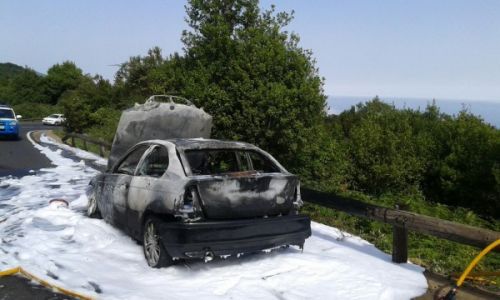 Die Feuerwehr von Icod de Los Vinos sowie die Einsatzkräfte der 112 und die lokale Polizei wurden am Donnerstag zur Landstraße TF 82 bei El Tanque Richtung Santiago del Teide gerufen. Dort brannte gegen11 Uhr ein Auto lichterloh. Genau dort, wo es vor zwei Jahren auch heftige Waldbrände gab.