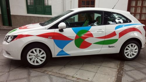 Vor Jahren hatte der lanzarotenische Künstler Cäsar Manrique einen Seat Ibiza desingt. Jetzt hat der größte Autovermieter der kanarischen Inseln, Cicar, die Replica dieses Fahrzeugs mit auf den Stand der Touristik Mese Fitur genommen. Dort ist dieses Auto ein Zuschauermagnet.