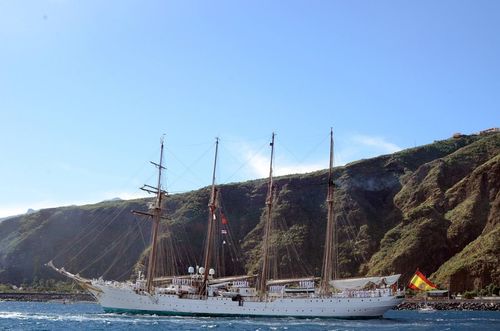 Das Spanische Militärsegelschulschiff “Elcano“, ähnlich wie unsere Gorch Fock, verließ jetzt zum Wochenende nach einem einwöchigen Aufenthalt den Hafen von Santa Cruz de la Palma. Mit mehr als 140 Kadetten ging es jetzt Richtung Casablanca, Marokko. PG-AR
