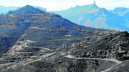 Nach dem Großbrand auf Gran Canaria blieb eine große Mondlandschaft zurück. Hier laufen jetzt die ersten Aufräumaktionen. Den Anwohnern wurden auch 500.000 Euro Soforthilfe zur Verfügung gestellt.