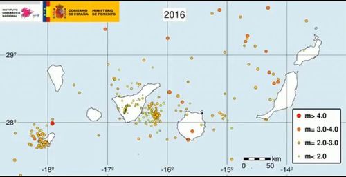 Das Instituto Geográfico Nacional (IGN) hat jetzt eine Animation veröffentlicht, auf welcher die Erdstöße, die im vergangenen Jahr aufgezeichnet wurden, zu sehen sind.