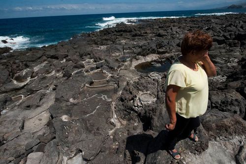 An der Küste von Los Silos bei Caleta de Interian gibt es noch eine alte Tradition. In kleinen Wasserbecken sammeln dort noch einige Frauen des Orts das Meer-salz. Es ist eine mühselige Arbeit. Aber man ist stolz auf die, wenn auch geringe, Ausbeute. Ein wunderbares weißes Salz, etwas gröber als andere, wird hier gewon-nen. Für die Besucher der Küste sind die kleinen Salinen nahezu unscheinbar. PG-AR