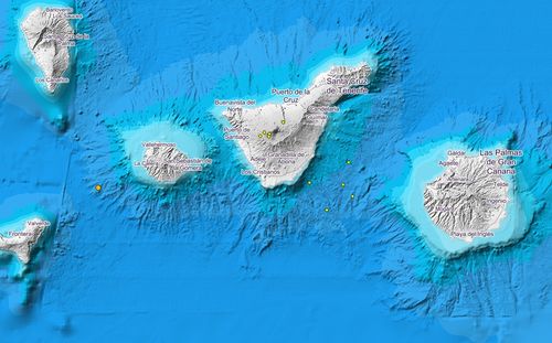 Innerhalb von 12 Stunden gab es in der Nacht zum Mittwoch bei Guía de Isora und Vilaflor im Süden der Insel Teneriffa wieder Erdstöße mit Stärken von 1,5 bis 1,6 in rund 14 Km Tiefe. Ebenfalls wurden solche bei Realejo alto gemessen und später bei Grandilla de Abona. Dann gab es einen Erdstoß zwischen Teneriffa und La Gomera mit 2,4 Grad.