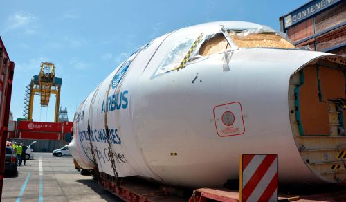 Im Hafen von Santa Cruz de Tenerife kam zum Wochenende ein Flugsimulator des Typs A320 an. Dieses Gerät, finanziert von Kanarischen Unternehmern, wurde dann mit Spezialtransportern zum Flughafen Reina Sofia, Tenerife Süd, gebracht.