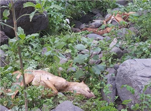 Die Naturschutzabteilung der Guardia Civil, die Seprona, wurde zum Barranco Real von Telde auf Gran Canaria gerufen. Hier bot sich ein trauriges Bild, da lagen zwischen Steinen und Unrat fünf tote Hunde.