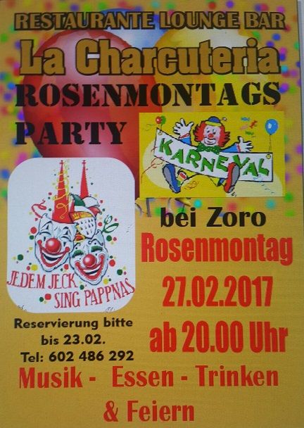 Wer möchte kann hier am Rosenmontag Karneval feieren da gibt es in de Carcuteria