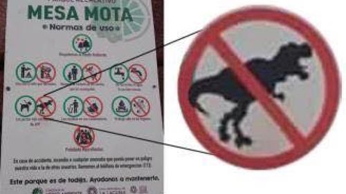 Jedoch unter anderem ist auf diesem Platz laut einem Bild auf dem Plakat auch das Ausführen von Dinosaurieren verboten. Wer der Verursacher dieses Scherzes war, wird nun ermittelt.