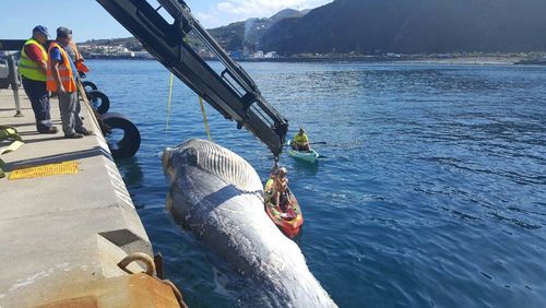 Am Dienstag fand man an der Küste von La Palma bei San Andrés einen toten Wal. Dieser wurde bis zum Hafen von Santa Cruz de la Palma geschleppt. Hier wurde er mit einem Kran geborgen. Das 14 Meter lange Tier wurde von dort in das Kanarische Institut für Meeresbiologie zur Untersuchung gebracht. PG-AR