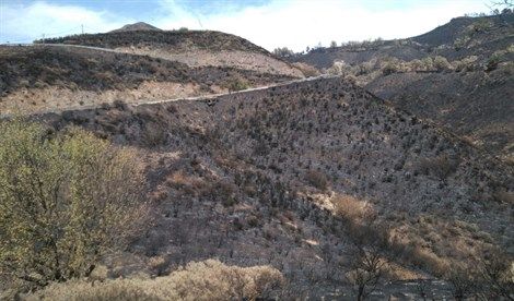 Nach dem großen Feuer auf Gran Canaria sind die Spezialisten des Landschaftsschutzes mit der Feuerwehr unterwegs um die Brandursache zu finden.