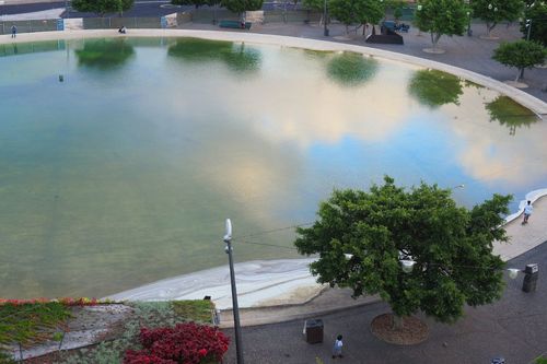 Im See an der Plaza de España von Santa Cruz de Tenerife bei der Regierungsverwaltung, kippt immer wieder das Wasser. Dieses wird grün und bildet Algen.