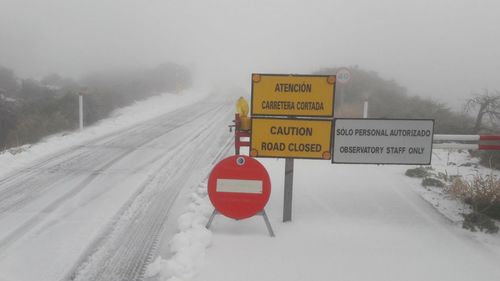 Die Regierungsverwaltung La Palmas hält auch weiterhin die Zufahrtsstraßen zum Roque de los Muchachos geschlossen. Weiterhin wurden auch Wanderwege wegen Schnee- und Eisglätte geschlossen.