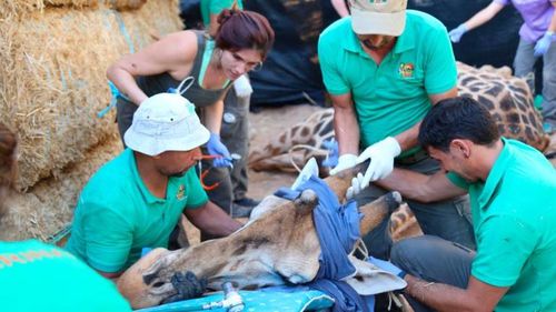 Damit die drei Giraffen Männchen, welche im Oasis Wild-Life auf Fuerteventura leben, mit den anderen Giraffen dort zusammenleben können, mussten diese kastriert werden. Dies war kein einfaches Unterfangen, hierzu wurden eigens Spezialisten eingeflogen.