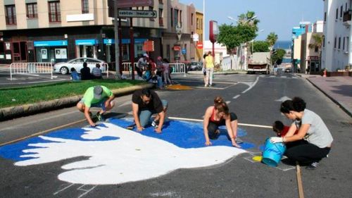 Auch auf der Insel Fuerteventura in der Gemeinde Puerto del Rosario hat man sich vorbereitet auf die Corpus Christi Feierlichkeiten. Hier legten 17 soziale Verbände die Salz- und Sandteppiche aus. Die Gemeinde stellte auch rund 6000 Kg an eingefärbtem Salz zur Verfügung.
