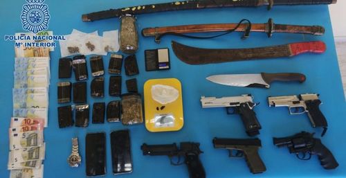 Bei der Wohnungsdurchsuchung fand man einige Drogen und auch Zubehör für den Handel bis hin zu nicht genehmigten Waffen.
