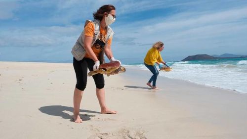 Daher wurden jetzt an den Grandes Playas von Corralejo am Mittwoch insgesamt drei große Wasserschildkröten ausgewildert, welche in der Aufzuchtstation Consejería de Medio Ambiente der Regierungsverwaltung gesund gepflegt wurden.