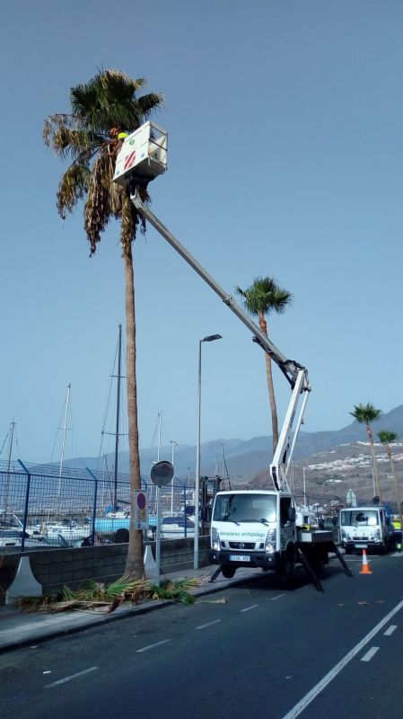 Über 50 Palmen, die die Straßen von Radazul und Tabaiba säumen, wurden von den Mitarbeitern des Gartenbauamtes beschnitten. Arbeiten wie diese werden regelmäßig vorgenommen, um zu verhindern, dass herabfallende Wedel Schäden verursachen.