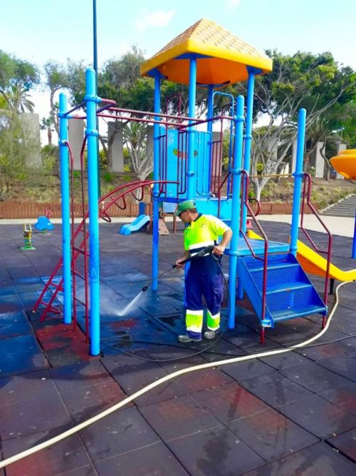 Nach und nach werden die Spielplätze in La Laguna desinfiziert und geöffnet. Insgesamt gibt es 146 Parks und Spielplätze in sechs Stadtteilen. Davon sind derzeit 40 wieder geöffnet. In der nächsten Woche werden weitere dazukommen.