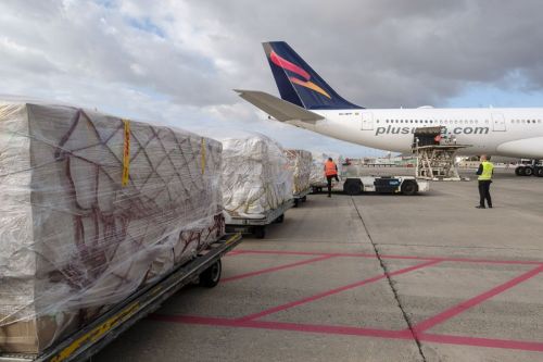 Erneut kam ein Flugzeug aus China mit Sanitärmaterial auf dem Flughafen Gando an.