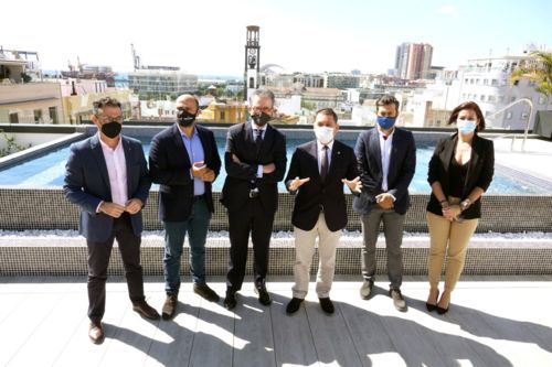 Am Mittwoch wurde ein neues Hotel in Teneriffas Hauptstadt Santa Cruz eröffnet. Es entstand in dem ehemaligen Einkaufszentrum Maya und verfügt über 83 Zimmer in fünf Stockwerken. Vom Restaurant und Pool auf der Dachterrasse aus hat der Gast einen grandiosen Ausblick auf die Dächer der Stadt. Mit dieser Neueröffnung gibt es in Santa Cruz 18 Hotels, von denen fünf noch pandemiebedingt geschlossen sind. „Das wird sich mit den Impfungen bald ändern“, sagte Bürgermeister José Manuel Bermúdez bei der Eröffnungsfeier. SV-AR