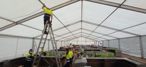 Das Dach der Markthalle in Tacoronte muss dringend erneuert werden. Deshalb wird der Markt in den nächsten Wochen in ein provisorisches Zelt umziehen. Die Bauarbeiten sind mit vier bis fünf Wochen Bauzeit veranschlagt, die Kosten belaufen sich auf 240.000 Euro.