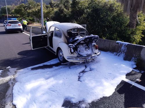 Die Feuerwehr von La Orotava hat am Montagmorgen ein brennendes Auto auf der Autobahn gelöscht. Auf der Nordautobahn von Puerto de la Cruz in Richtung Santa Cruz geriet ein alter VW-Käfer in Brand. Das Feuer konzentrierte sich auf den hinteren Teil, in dem der Motor sitzt. Brandursache war ausgelaufenes Benzin. Glücklicherweise entstand nur Sachschaden.