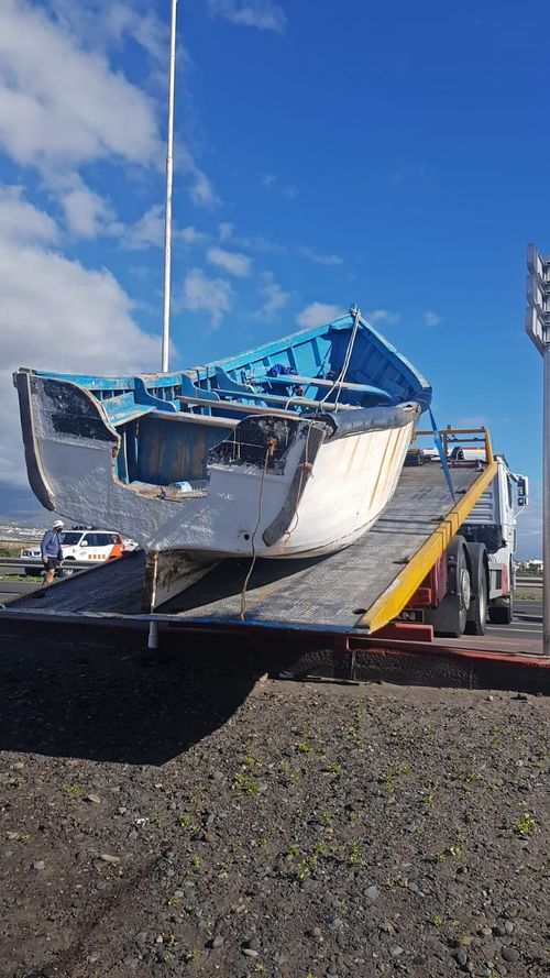 Die Stadt Arona hat am Freitagvormittag das erste von zwei Flüchtlingsbooten am Strand von Las Galletas entfernen lassen. Nachdem die kanarische Regierung nicht reagiert hat, haben die Stadtvertreter beschlossen, selbst zur Tat zu schreiten.