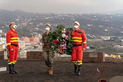 Aus Solidarität mit allen Inselbewohnern, die an Allerheiligen nicht den Friedhof besuchen konnten, weil dieser innerhalb des Sperrge-bietes liegt, hat das Militär auf dem Hügel Tenisca in Los Llanos symbolisch einen Kranz niedergelegt. Die Fliegerstaffel überflog den Friedhof in Las Manchas, der durch den Aus-bruch nicht erreichbar ist.