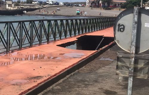 Die Flut hat am Freitag auf der Promenade von Las Galletas in Arona einen Teil Strandpromenade an der Avenia del Atlántico überflutet und beschädigt. Auf der Straße ist eine Fahrspur gesperrt worden. Während des Wochenendes sollen die Schäden behoben werden. Auch die Straße soll schnellstmöglich wieder freigegeben werden.