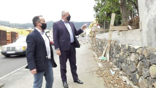 Nachdem das kanarische Verwaltungsgericht in der vergangenen Woche der Gemeinde Los Realejos recht gegeben und den Stopp der Reparatur der Monasterio-Mauer in La Montañeta für nichtig erklärt hat, wird um Lösungen gerungen. Bürgermeister Domínguez bat die Inselregierung, von dem Widerspruchsrecht keinen Gebrauch zu machen. Am Dienstag waren Techniker und der Abgeordnete für das Verkehrswesen, Enrique Arriaga, vor Ort, um ein Projekt zu erarbeiten, dass die Stabilität der Mauer garantiert.