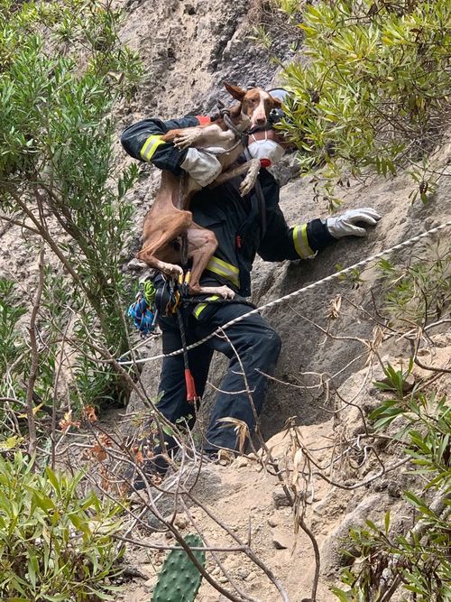 Feuerwehrleute von Icod de los Vinos haben am Samstag einen Jagdhund aus der schwer zugänglichen Schlucht Barranco del Pollo in San Juan de la Rambla gerettet. Das Tier ließ sich von seinen Rettern in den Arm nehmen und gemeinsam kletterten sie aus dem Barranco. Ein Tierschutzverein kümmert sich jetzt um den Hund.