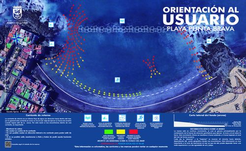 Die Stadt Puerto de la Cruz hat an ihren Stränden Informationstafeln aufgestellt, die den Badegast vor möglichen Risiken durch Strömungen warnt. Auch auf die Bedeutung der Fahnen wird hingewiesen. So sollen mögliche Badeunfälle verhindert werden. Die Tafeln sind an den Stränden Playa Jardín, Playa San Telmo und Playa Martiánez.