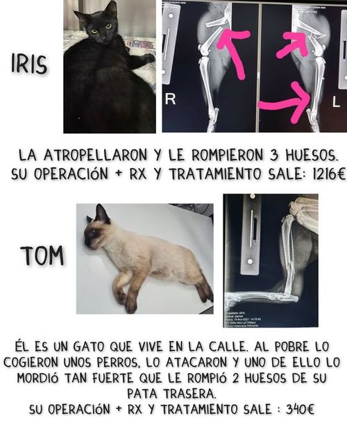 Der Tierschutzverein Angeles Felinos de Arona (AFA) bittet um Hilfe für zwei schwer verletzte Katzen. Die schwarze Katze Iris wurde von einem Auto angefahren. Dabei wurden drei Knochen gebrochen. Operation und Behandlung kosten 1.216 Euro. Den Siamkater Tom haben Hunde übel zugerichtet. Einer hat so fest zugebissen, dass er ihm zwei Knochen am Hinterlauf brach. Seine Operation wird 340 Euro kosten. Wer möchte, kann für drei Euro ein Los kaufen und an einer Verlosung von einem Einkaufsgutschein in Höhe von 100 Euro teilnehmen. Kontakt über 669 51 07 56. Spendenkonto: ES32 2100 3940 3901 0026 6609.Fügen Sie als Betreff Tom e Iris dazu.