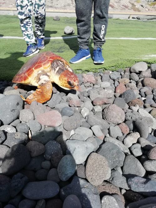 Anwohner und Sportler befreiten am Sonntag am Strand El Burrero in Ingenio eine Meeresschildkröte, die sich in einem Fischernetz verfangen hatte. Direkt neben ihr befand sich ein kleineres jüngeres Exemplar, das allerdings schon tot und stark verwest war. Die gerettete Schildkröte wurde in die Wildtierauffangstation gebracht. Dort wurde festgestellt, dass der Verdauungstrakt von einer Masse verstopft ist. Der Schildkröte geht es schlecht. Sie wird nun tierärztlich behandelt. SV-AR