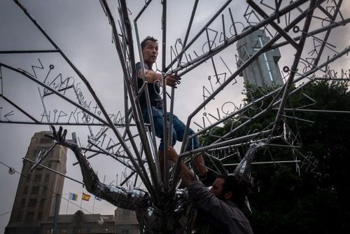 Neue Skulptur für die Plaza España