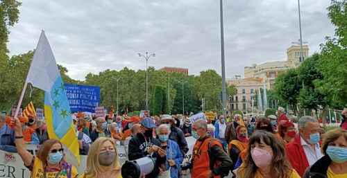 Eine Gruppe von Rentnern reiste nach Madrid, um dort mit einer Protestaktion