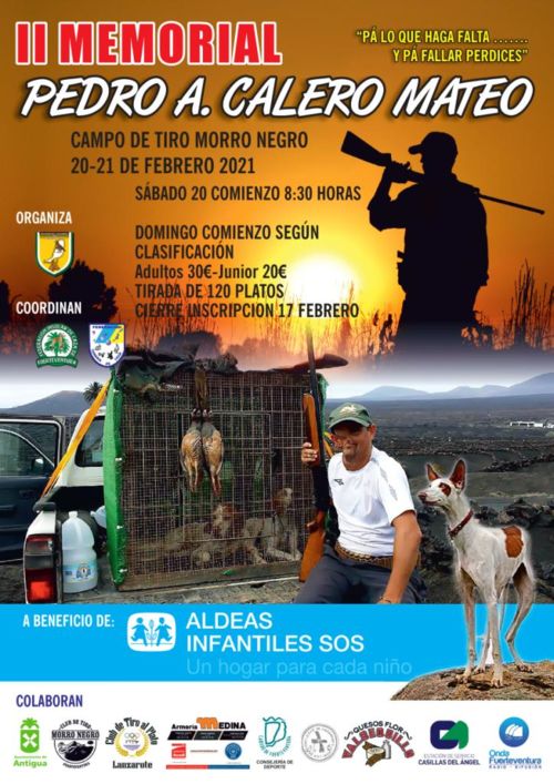 Der Jägerverband von Fuerteventura trifft sich am Wochenende zum II. Benefiz -wettbewerb Memorial Pedro A. Calero Mateo. Der Erlös der Veranstaltung kommt dem SOS Kinderdorf zugute. Die Schützen aus Lanzarote, die normalerweise auch angereist wären, haben ihre Spende einfach so überwiesen. Der Startpreis beträgt 30 Euro für Erwachsene und 20 Euro für Kinder.