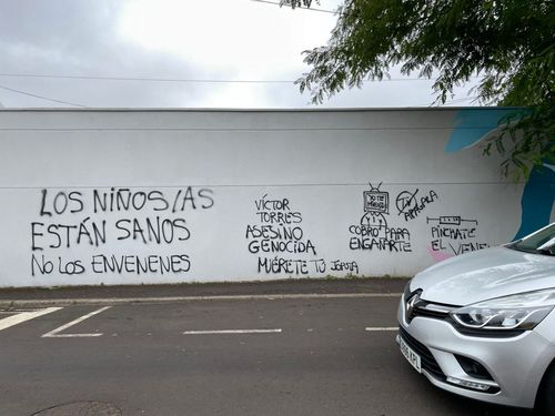 Mehrere Sprüche aus der Riege der Negationisten der Coronakrise und auch Impfgegner wurden in der Nacht zum Montag auf die Mauer am Fußballstadion Francisco Peraza in La Laguna geschmiert. Die Stadt hat bereits angeordnet, die Mauer neu zu streichen.