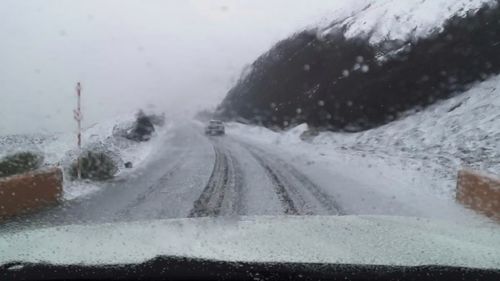 Straßensperre durch Schneefall