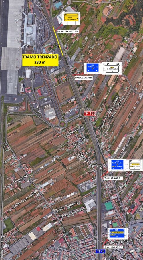 Sonntagnacht von 22 bis 6 Uhr am Montag finden auf der Nordautobahn TF-5 auf der Höhe der Autobahnausfahrt Los Rodeos Straßenarbeiten statt. Um den Verkehr zu entlasten, sollen die Spuren künftig so geführt werden, dass Fahrer, die nach El Portezuelo, El Socorro und Valle de Guerra wollen, direkt abbiegen können, ohne die Spur über die Flughafenausfahrt zu nehmen.
