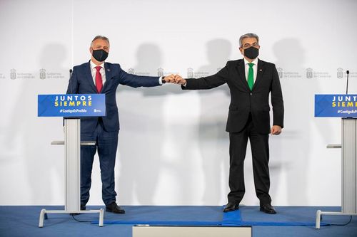 Der Präsident der Kanarischen Inseln, Ángel Víctor Torres, und sein Vize, Román Rodríguez, haben am Freitag einen Plan mit außerordentlichen Wirtschaftshilfen für die gebeutelten Restaurants, Hotels, Handel und Sportunternehmen angekündigt. Über 400 Millionen Euro sollen locker gemacht werden.