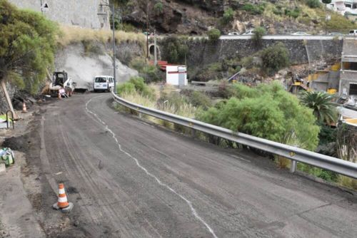 In der Calle Italia im Ortsteil Tabaiba Baja in El Rosario kommen die Asphaltarbeiten gut voran. Die Straße bekommt eine neue Asphaltdecke, Steilwände werden mit Spritzbeton abgesichert und die Leitplanken aus Metall werden ersetzt.