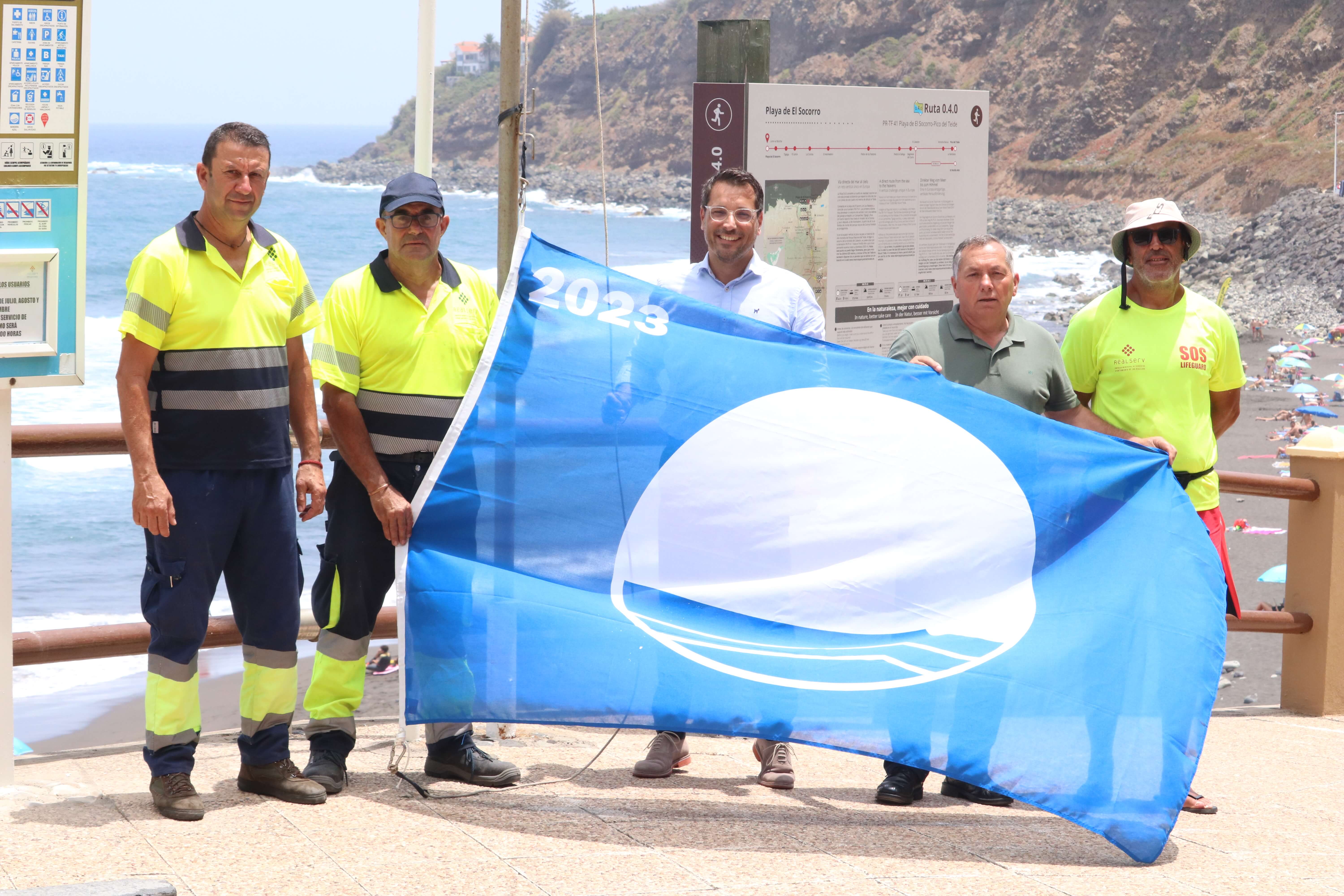 An der beliebten Playa El Socorro wurde vor dem Wochenende die Blaue Fahne gehisst. Bürgermeister Adolfo González sowie Vertreter der Firma Realserv, die den Strand sauber halten, und die Rettungsschwimmer freuten sich über die Auszeichnung.