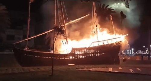 In der Nacht zum Mittwoch brannte in Las Palmas ein Nachbau der Karavelle „La Niña III“, mit der Christopher Kolumbus von Gran Canaria aus den Atlantik überquerte. Das Boot stand im Stadtteil Santa Catalina, um an die Rolle Gran Canarias bei der Entde-ckung Amerikas zu erinnern. Die Feuerwehr benötigte rund 8.000 Liter Wasser um den Brand zu löschen.