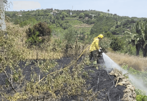 Am Sonntagmittag gegen 14 Uhr brach auf einem Grundstück mit Buschwerk ein Feuer aus. Glücklicherweise konnte die Feuerwehr schnell löschen und es waren nur rund 50 Quadratmeter betroffen. Der Gemeinderat, Héctor Cabrera, bat die Inselbewohner und Besucher um äußerste Vorsicht und erinnerte daran, dass alle Geräte, die Funkenflug erzeugen könnten, in Naturnähe nicht benutzt werden dürfen. Die Nutzung der Grillplätze im Wald ist verboten.